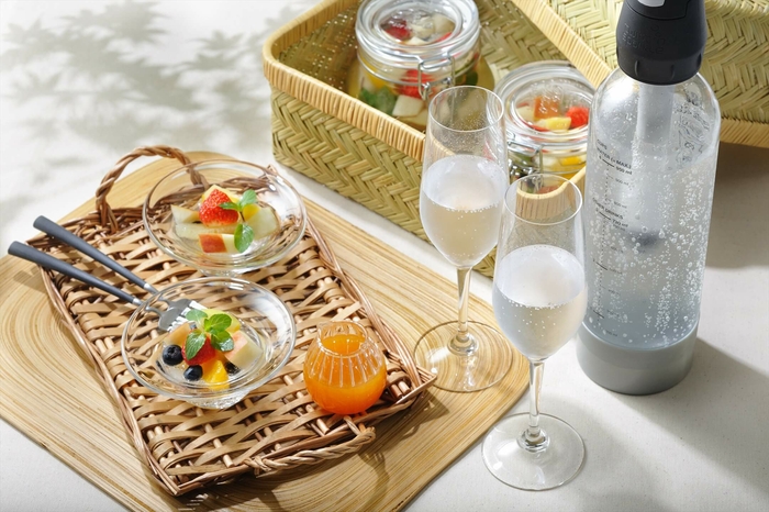 Hoshino Resorts KAI Aso stands in Aso-Kuju National Park. Gaze at the five peaks of Mount Asoーthe largest active volcano in Japanーwhile sipping on water drawn from one of Japan’s 100 famous water sources. Change up the water of the water to your liking: carbonate it, add syrup, and so on. You’ll also get some refreshing fruits that have sat in carbonated water. Sit amongst the colourful flowers, like tulips and baby blue eyes, while soaking up the beautiful sights of Aso.