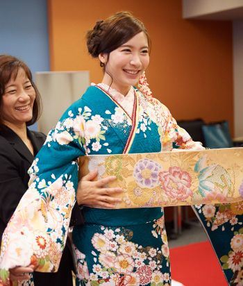 コーディネートやヘアメイクはもちろん、帯結びにまでこだわってスタイリング。
