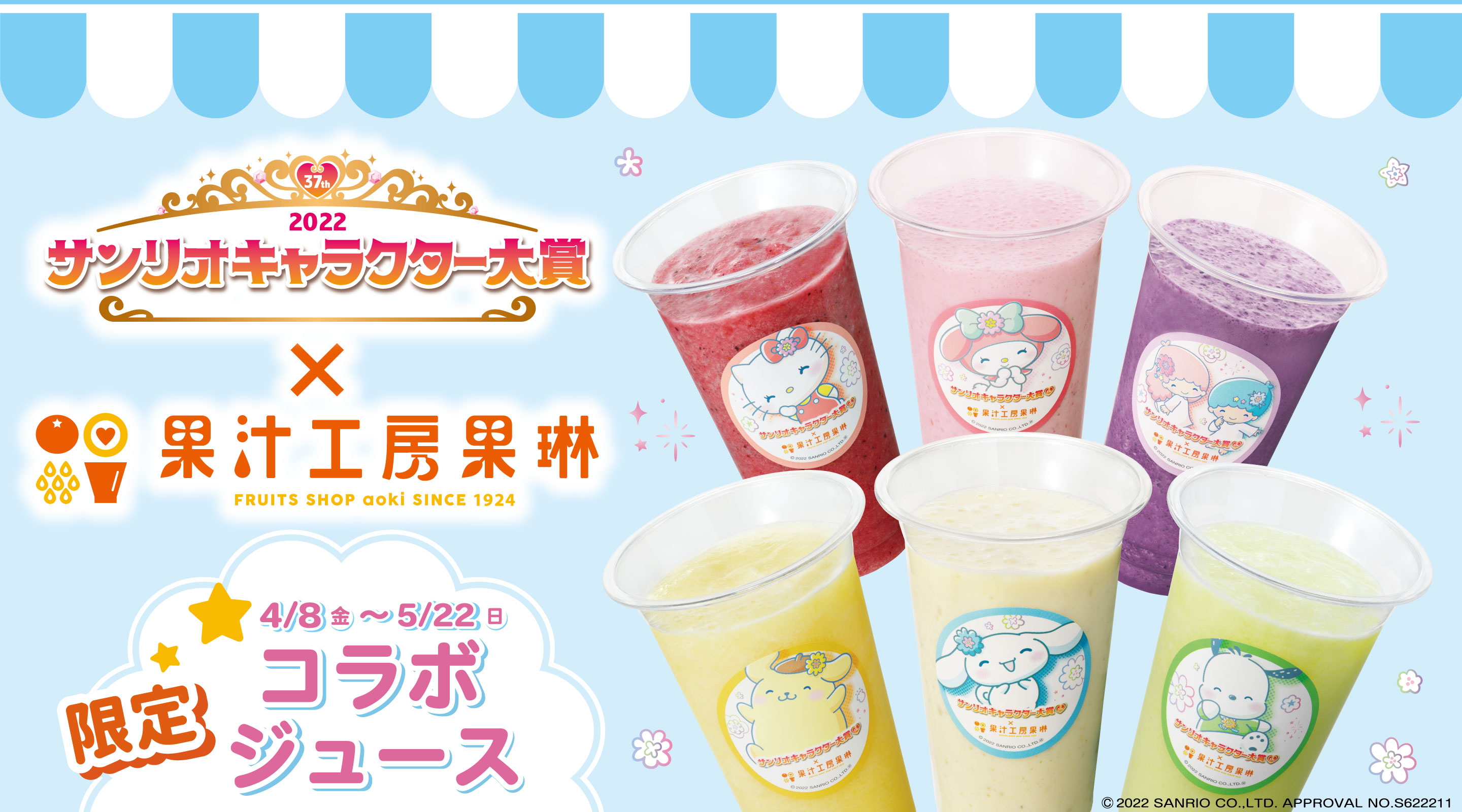 青木水果集團與三麗鷗人氣投票企劃「2022年三麗鷗角色大賞」合作、展開只要購買對象商品購入就可投票給「2022年三麗鷗角色大賞」的企劃、在日本全國的果汁工房果琳 等188店舗於2022年4月8日(五)至5月22日(日)期間限定實施。「2022年三麗鷗角色大賞」是從超過450名三麗鷗明星中選出80名參選、讓粉絲在WEB或是三麗鷗商店投票決定名次的活動。